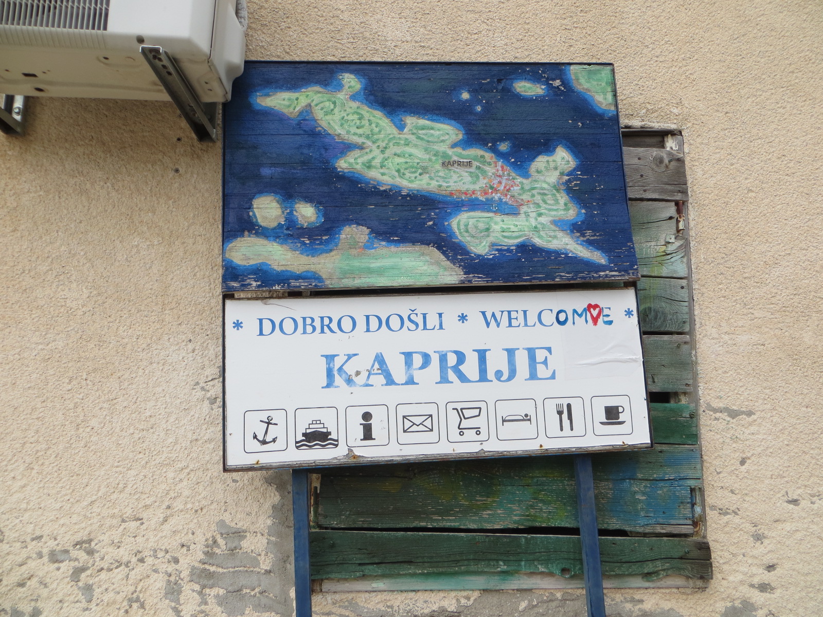 V vasi je trgovina, pošta, ambulanta in več restavracij. Na severnozahodni strani otoka se nahaja kaprijsko pristanišče, ki zaradi naravne zaščite z vseh strani, omogoča varen privez številnim jahtam in navtikom, željnih počitka in okušanja domačih specialitet.