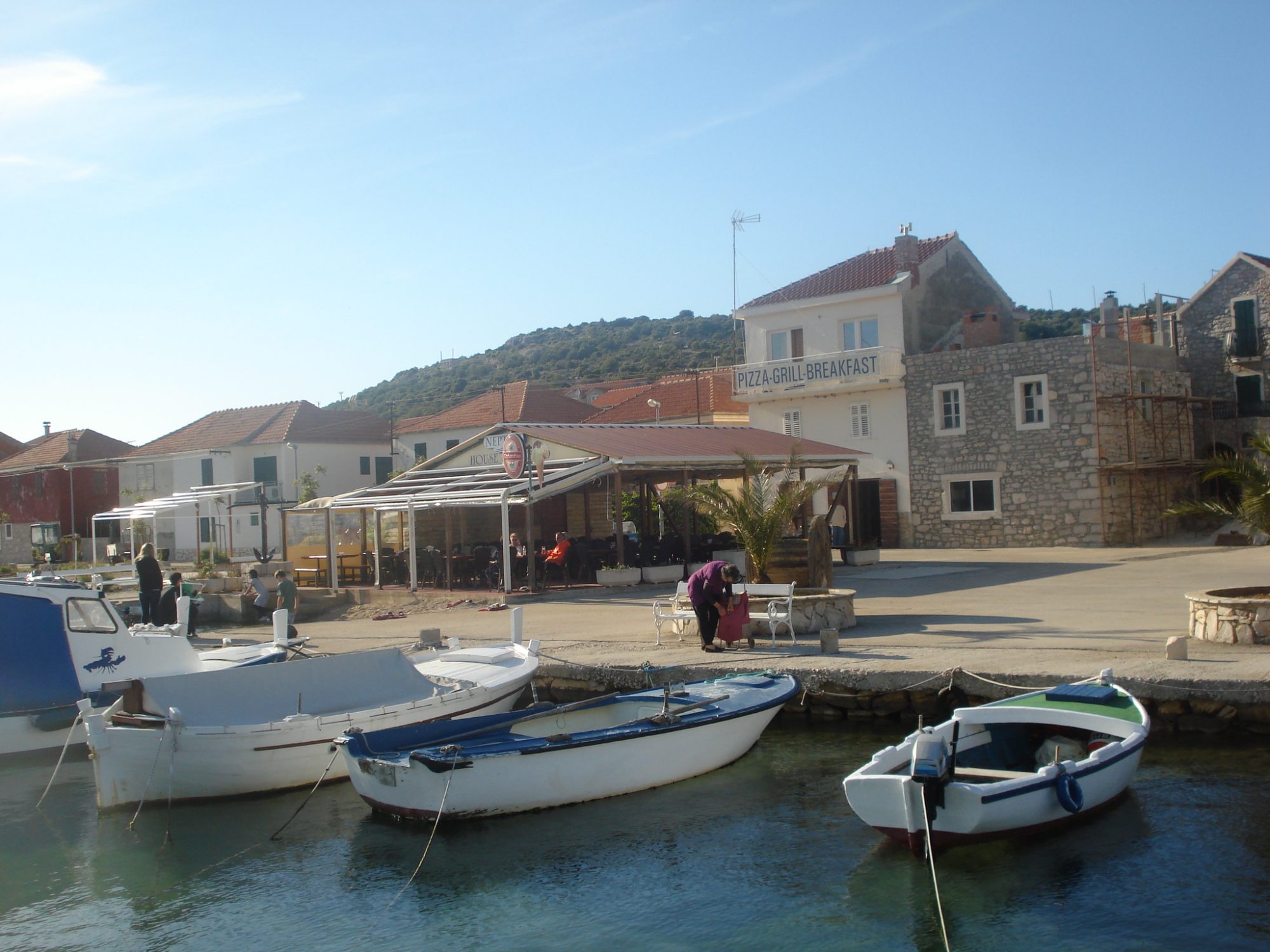Ko stopite s hitre ladje oz. trajekta nadaljujete pot s pomola naravnost v manjši klanec. Pot vas vodi mimo restavracije Kat, ogromnega naravnega zbiralnika vode ter mimo vaškega trga (z izobešeno zastavo). Tam se pot zoži in rahlo zavije. Apartmajska hiša Hoba d.o.o. se nahaja ravno na tem ovinku in sicer drugi vhod v trojčku hiš.